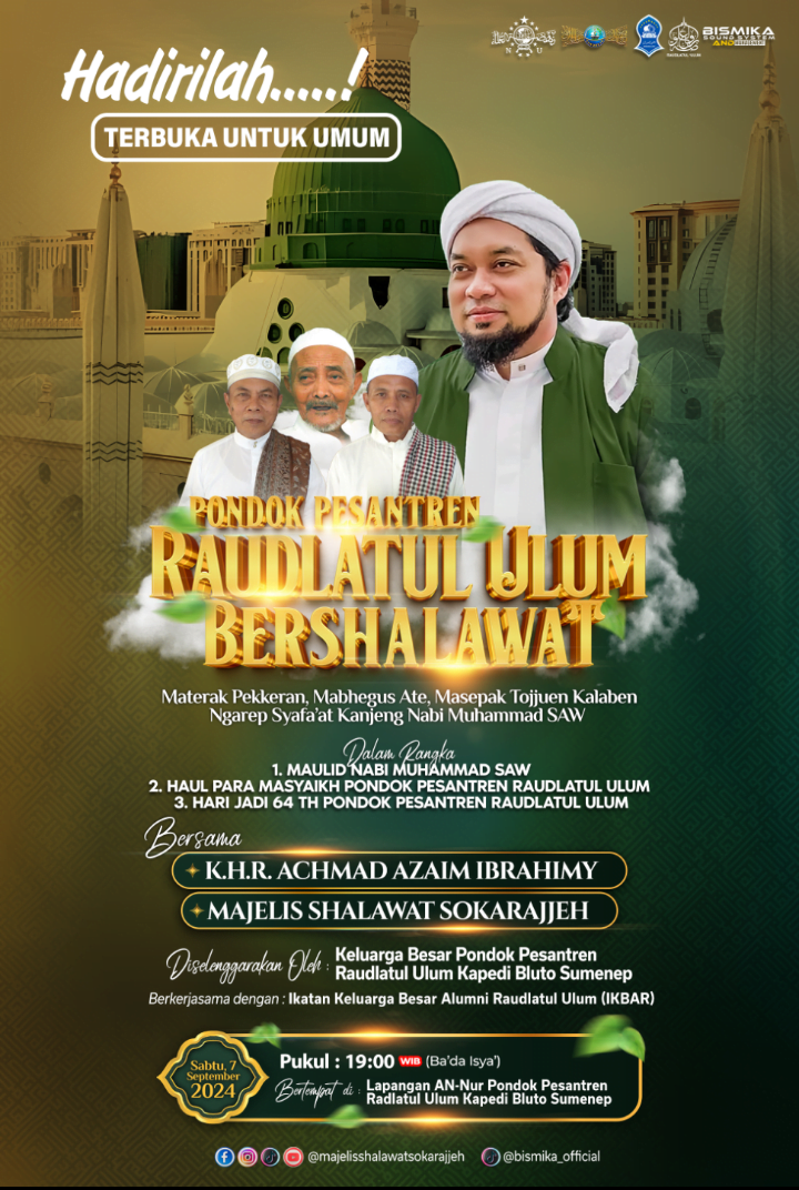 SUMENEP — Haul Masyaikh Pondok Pesantren Raudlatul Ulum Kapedi, Kecamatan Bluto, Sumenep, yang akan digelar pada Sabtu (07/09/2024) dikemas dengan kegiatan yang menarik. Sebab, pada gelaran tahun ini mendatangkan Majelis Selawat Sokarajjhe Situbondo.